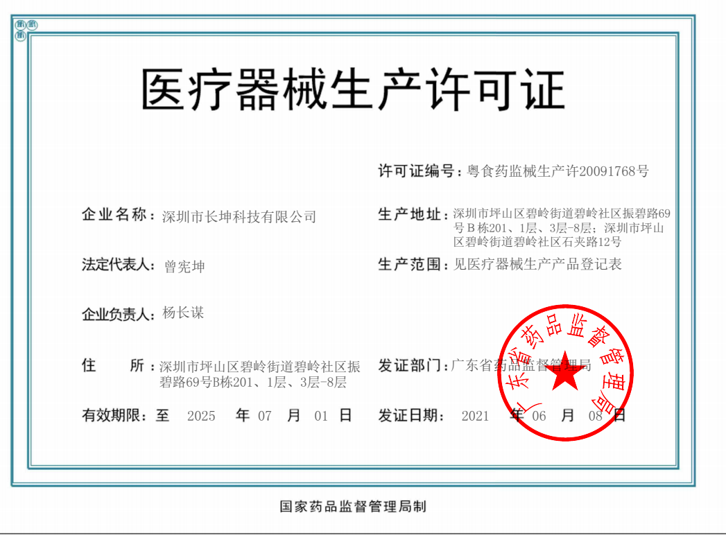 歡迎來到深圳市長坤科技有限公司官網!      粵深食藥監械經營備20151166號      粵食藥監械生產許20091768號